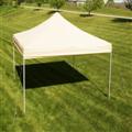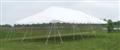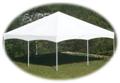 White frame tent 30'x30'. Stakes and ropes stay close to poles to make ...