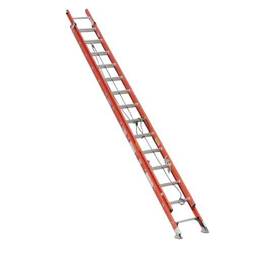 300 lbs. load capacity Mar-resistant molded end caps External guides at top of base section securely interlock rails Interlocking side rails Rugged gravity spring locks operate smoothly Rope clamp ties rope to rung Molded rung braces Durable rail shield bracket and shoe with Shu-LokŪ, slip-resistant pad and spur plate