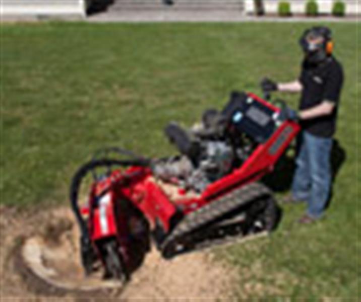 The 1,670 lb. frame keeps the unit stable and in proper contact with the stump. The track system features a true skid-stter type drive and provides excellent maneuverability, allowing the operator to easily transport the unit to and from the work site. Intuitive controls provide one control for each track and a joy stick to control all cutting head functions.