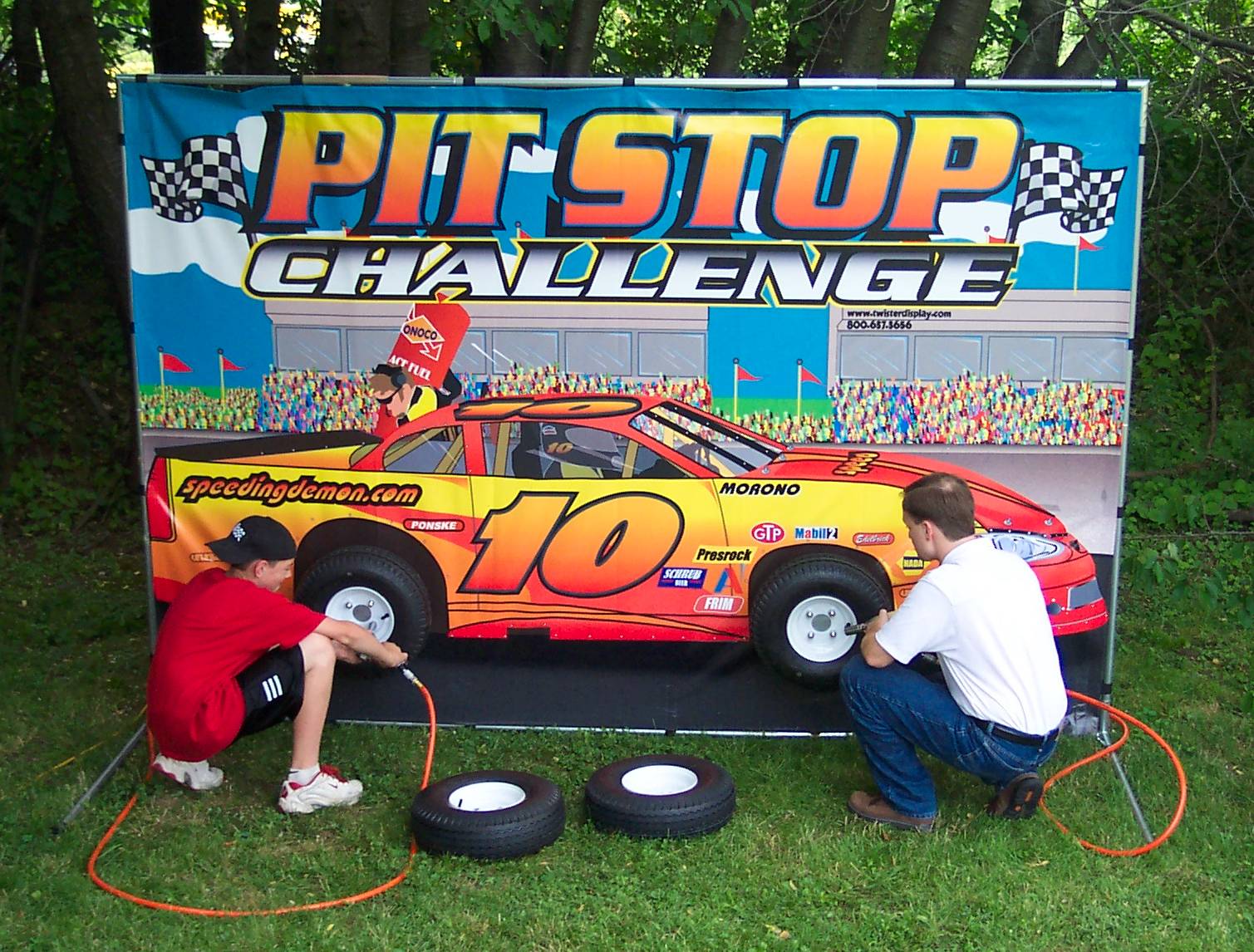 Pit Stop Challenge brings all of the energy and excitement of Stock Car Racing to any party or event. Challengers race against the clock in a frantic effort to have the fastest change.