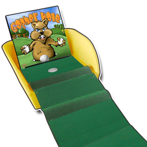 This is one mean gopher and he wants his golf balls back!! Do you think you can putt the balls over those humps and into his hole before he loses it?
